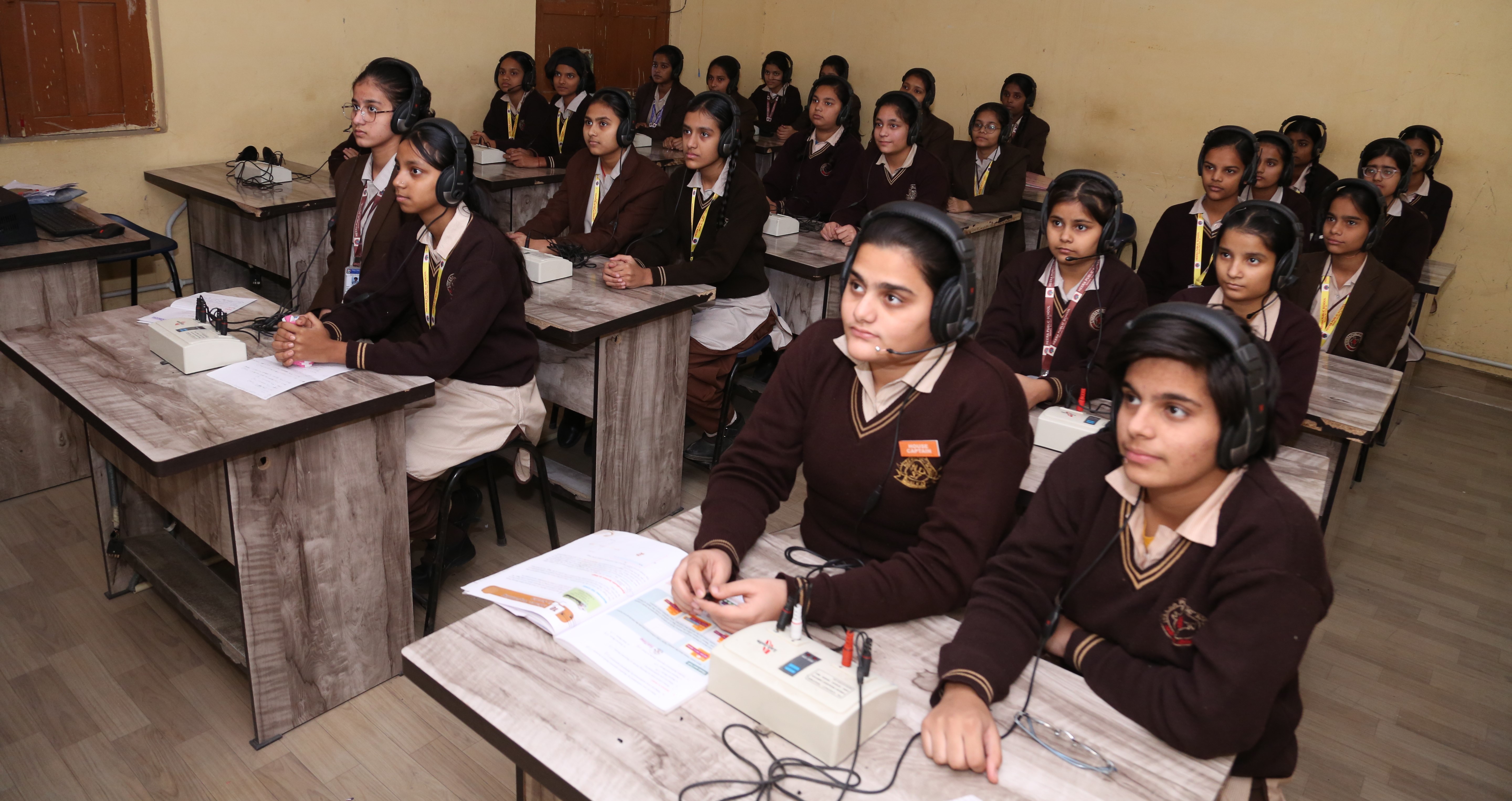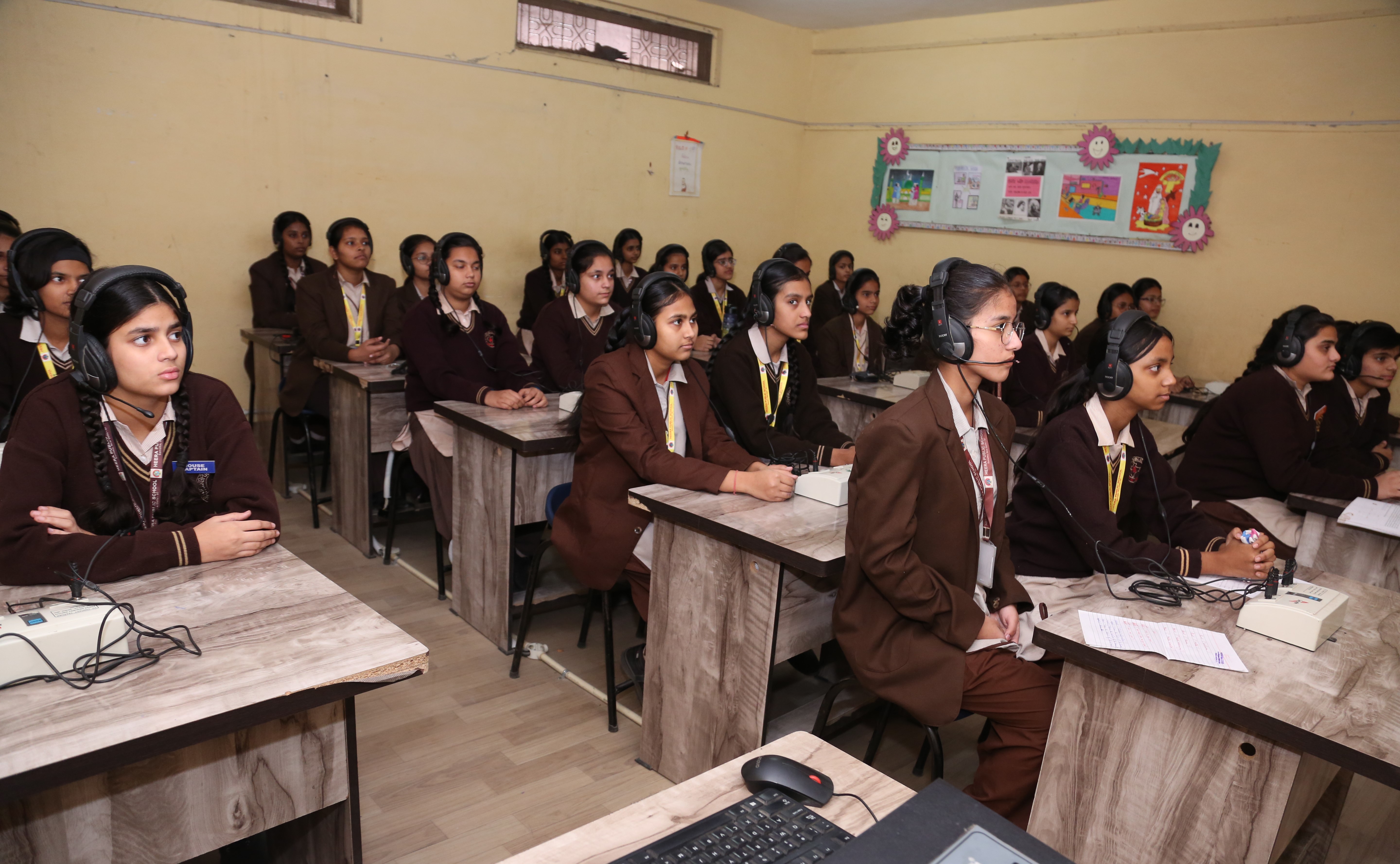 Language Labs in Heera Public School provide a dynamic and interactive environment for students to enhance their communication skills. The labs are equipped with modern audio – visual tools and language software, these labs help students improve their pronunciation, vocabulary, and grammar. Students get many opportunities for listening, speaking, reading and writing practice in a structured manner. These interactive sessions make the learning very effective. When students are exposed to various reading passages, it fosters fluency, comprehension henceforth build students’ confidence in expressing themselves. These labs help students in preparing students for global communication and fostering a deeper understanding of various cultures across the globe.